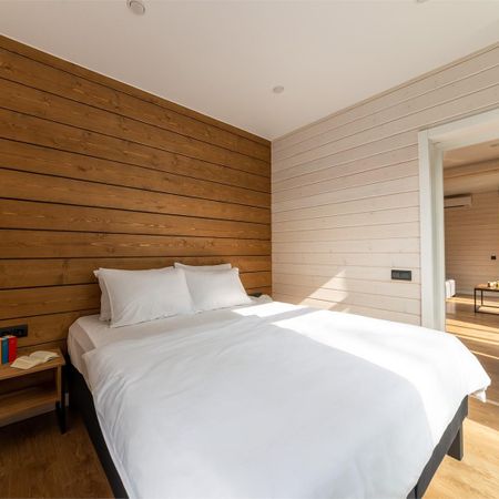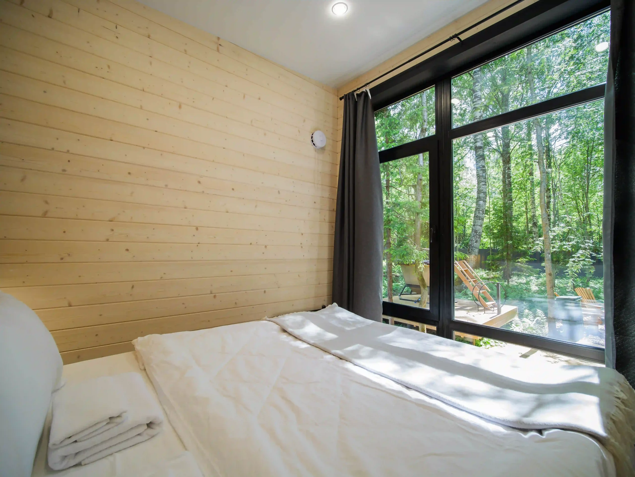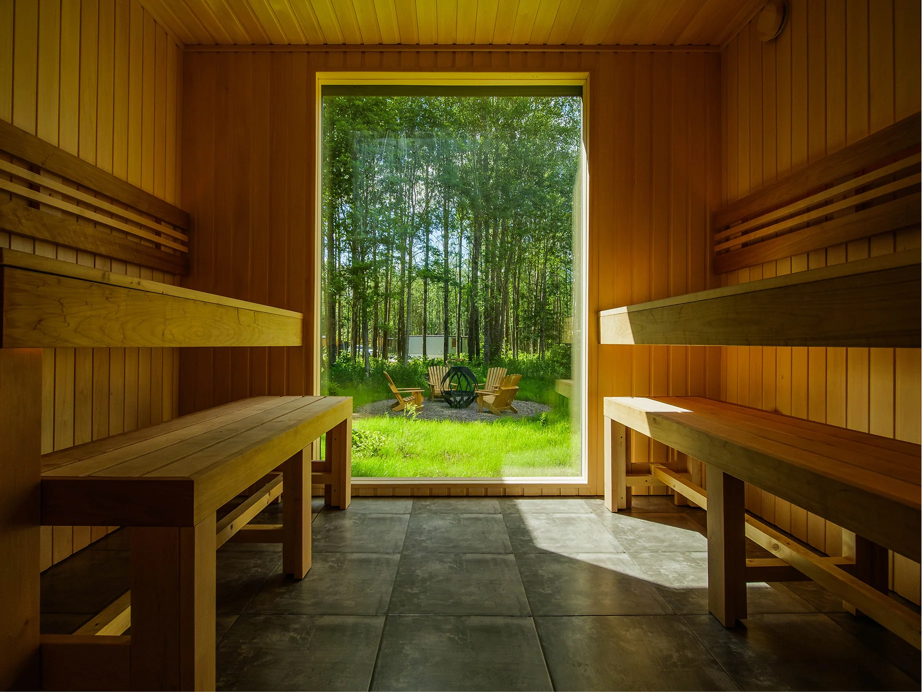 Лес вокруг отеля создает естественный кокон: здесь мягче воздух, тише звуки и легче переключиться в режим отдыха, просто выйдя на террасу или окунувшись в банный чан под открытым небом.