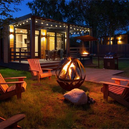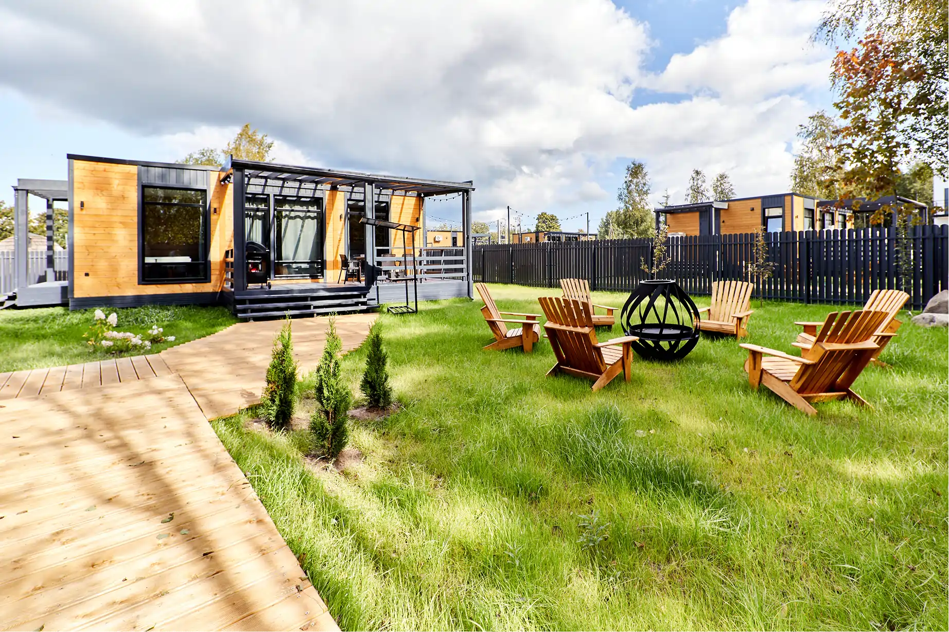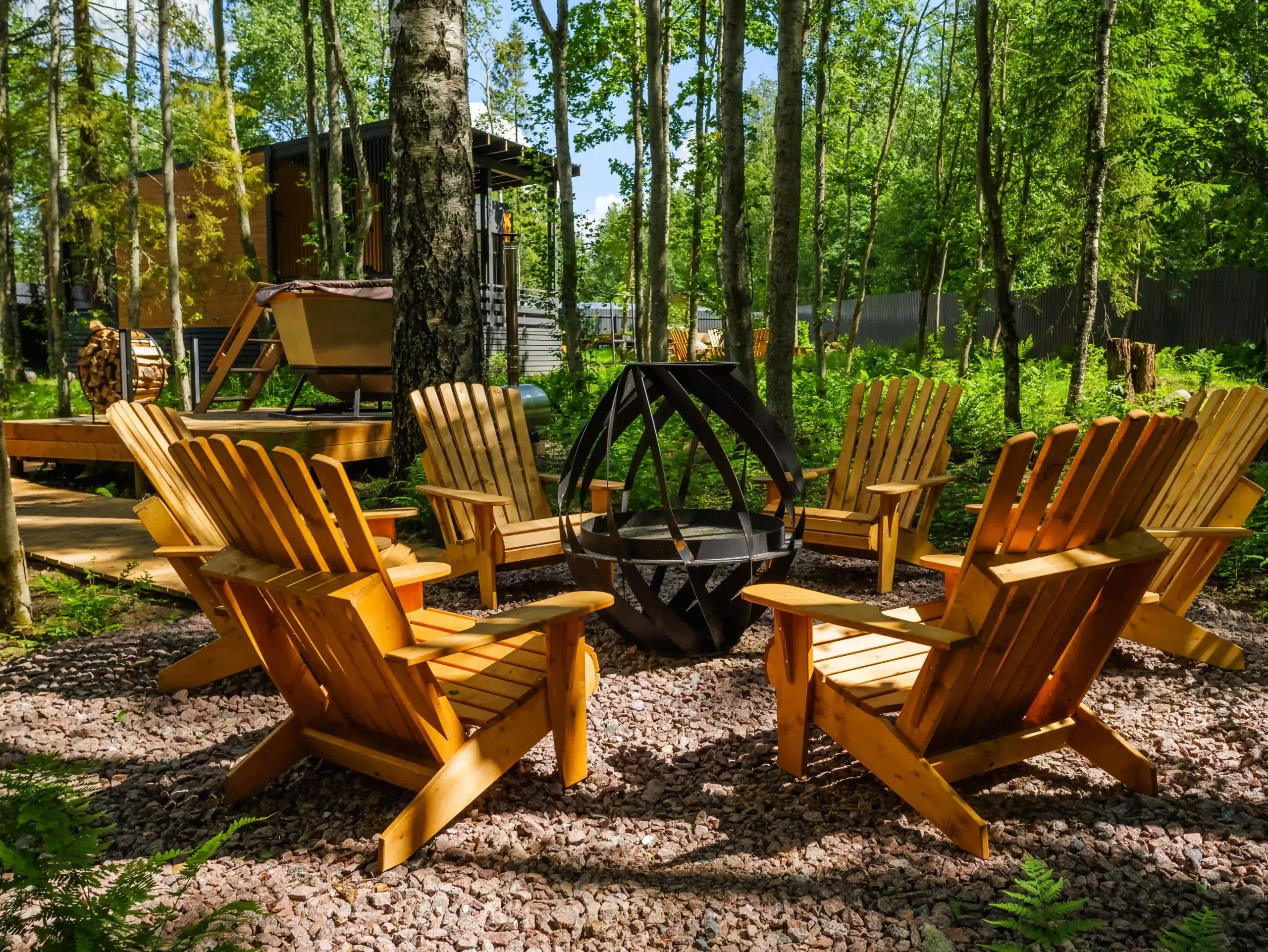 Уютное пространство, где вечерами можно собраться вокруг живого огня и насладиться атмосферой загородного кемпинга.