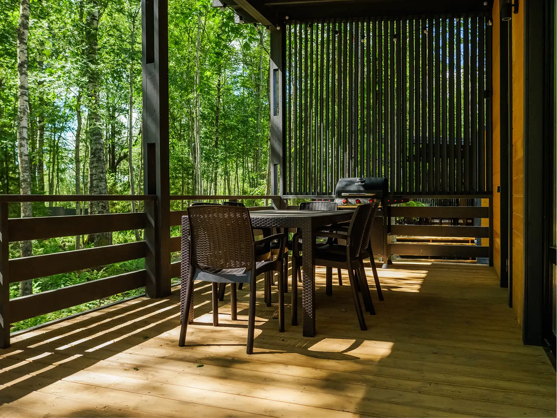 Домики с террасой, зоной отдыха и BBQ, баней и чаном