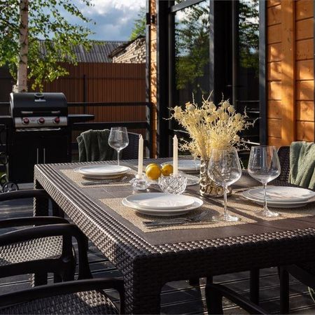 У каждого домика своя зона BBQ с двумя видами мангалов и удобной уличной мебелью для вечерних посиделок.
