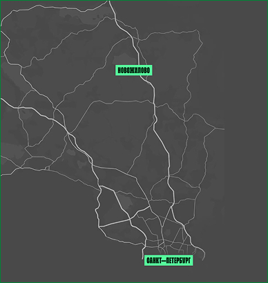 54 км по Новоприозерскому шоссе до деревни Новожилово